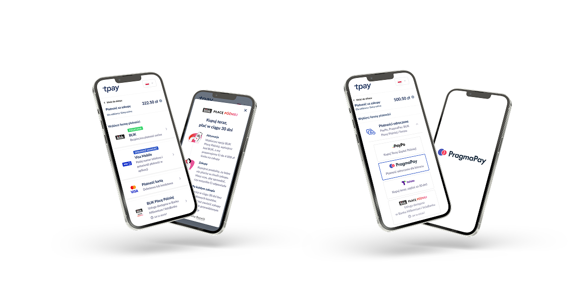 Metody płatności PragmaPay i BLIK Płacę Później są automatycznie dostępne w bramce płatniczej Tpay.