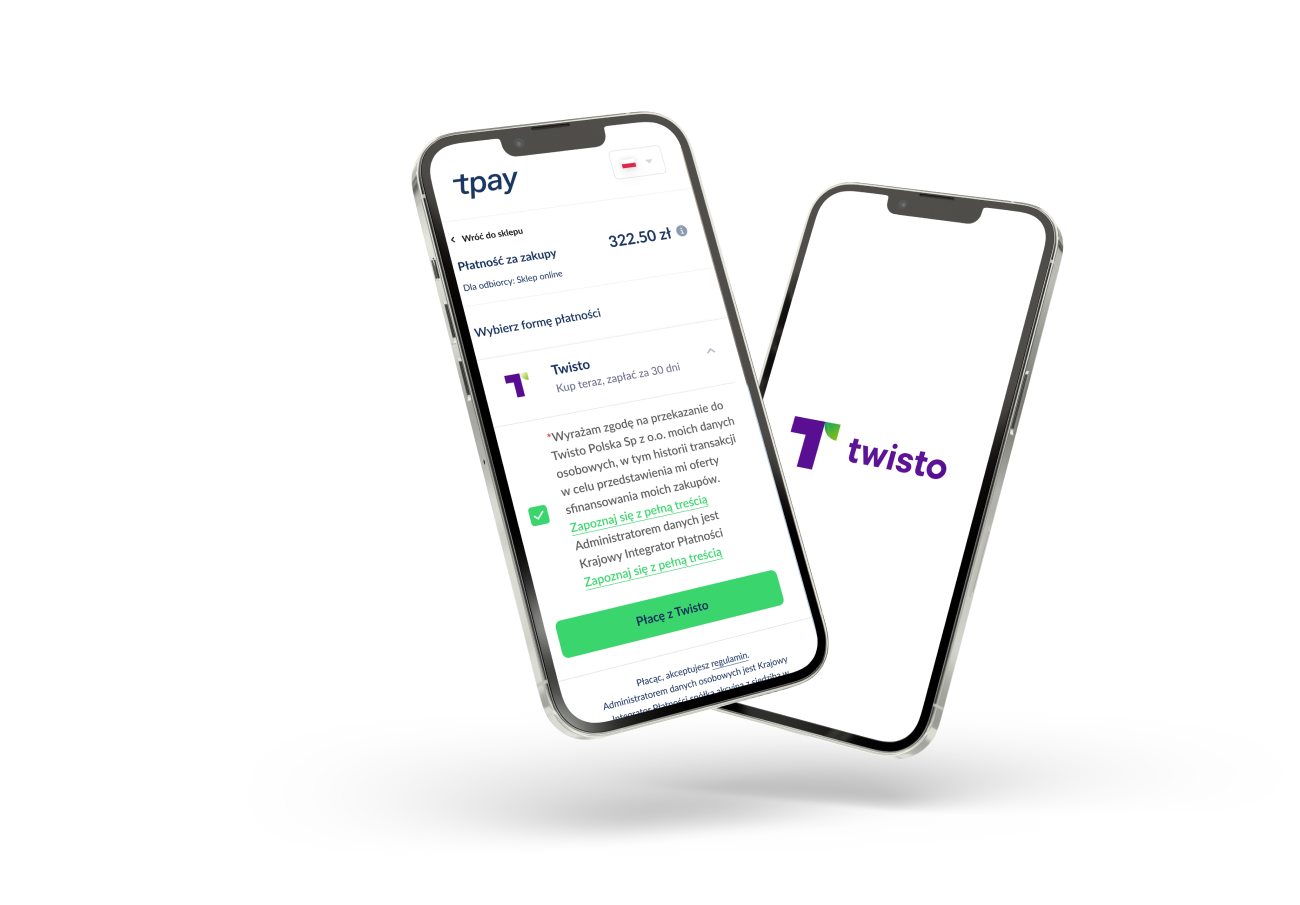 Jeśli chcesz zacząć korzystać z usług Tpay, wystarczy, że przejdziesz proces rejestracji i weryfikacji w Tpay i Twoja branża będzie mieć dostęp do płatności Twisto. Gdy spełniasz te warunki, samodzielnie włączasz metodę płatności Twisto w Panelu Akceptanta Tpay.